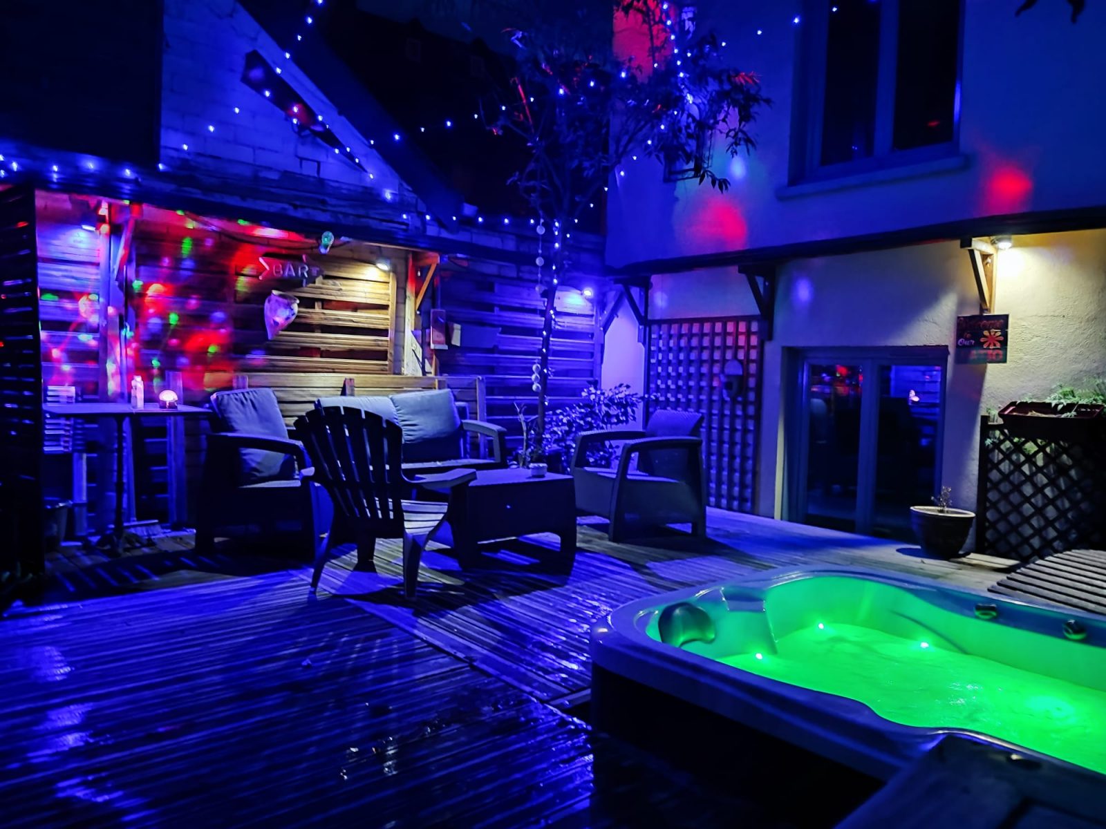 En el centro de Bagnères-de-Luchon, a 20 m de las Alamedas de Etigny, a 300 m del teleférico que lleva a la estación de esquí de Superbagnères y a 500 m de los baños termales, Le Patio de Luchon goza de una ubicación ideal para veraneantes, excursionistas y amantes de la montaña. Una terraza cubierta en el lado de la calle es perfecta para relajarse. Table d'hôtes disponible bajo petición. Planta baja: pequeña terraza cubierta que da a la calle Lamartine, salón, sala de desayunos. Acceso por un lado de la casa, 1a planta: habitación familiar Lac du Portillon (1 cama doble redonda de 200 de diámetro + 2 literas individuales en pequeña habitación contigua). 1er piso: habitaciones Lac des Boums (1 cama doble, 160 cm) y Lac d'Ôo (1 cama doble, 180 cm + 1 cama individual, 90 cm). 2ª planta: Lac de la Montagnette (1 cama doble de 180 cm y 1 cama individual de 90 cm) y Lac d'Espingo (1 cama doble de 160 cm). Las 5 habitaciones disponen de cuarto de baño privado con ducha/WC. Suite Lac de Badech (1 cama doble (180 cm) y 1 habitación pequeña con 1 cama doble (140 cm)) + cocina pequeña. Todas las habitaciones tienen cuarto de ducha y WC privados, edredones. Limpieza incluida, se puede proporcionar ropa de cama con coste adicional. Posibilidad de utilizar la cocina y el aparcamiento (4 plazas) (10 euros/día). Jacuzzi disponible en el patio de 10h a 20h todo el año. Oferta para huéspedes del spa.