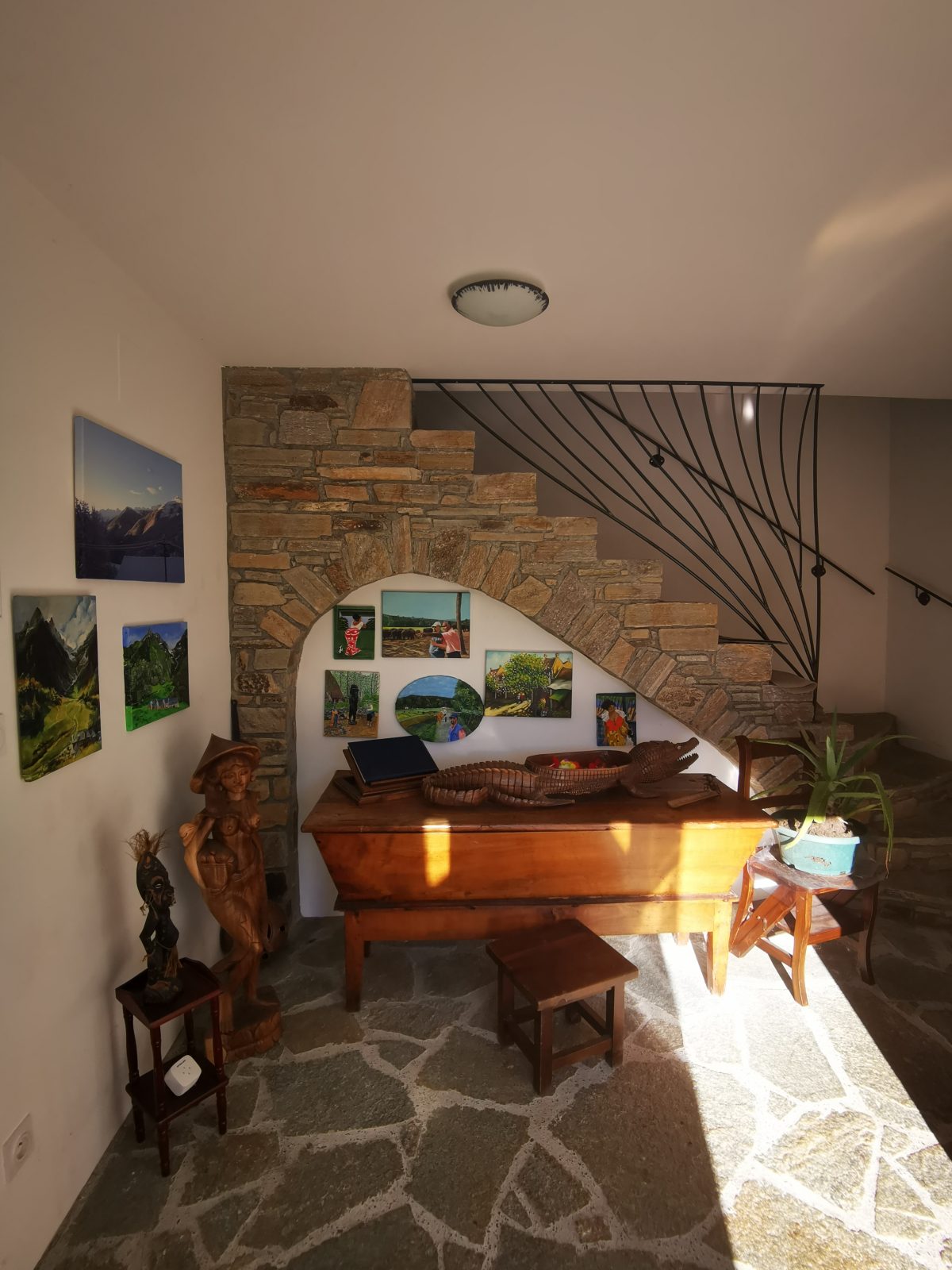 A 1.100 metros de altitud, esta auténtica casa de montaña combina encanto, tranquilidad y naturaleza. Su ambiente cálido y su entorno virgen la convierten en un lugar ideal para reponer fuerzas, a sólo 8 km de la ciudad balneario de Luchon y punto de partida de numerosas excursiones desde su alojamiento. Dispone de 2 habitaciones (una en la planta baja y otra en el piso superior), cada una con ducha a la italiana, WC, lavabo y secador de pelo. Televisión, cama Bultex de 160 cm, ropa de cama incluida. Arriba, una pequeña cocina con nevera, vitrocerámica, microondas, hervidor de agua, cafetera y tetera, vajilla, mesa y sillas, plancha y tabla de planchar. Mi museo contiguo de arte del Pacífico Sur y las acuarelas expuestas son una invitación a la serenidad y a un viaje interior para un paréntesis intemporal en el corazón de los Pirineos. El desayuno es exclusivamente de montaña y se sirve en el antiguo granero: embutidos, queso, pan, mantequilla, tortitas, bollería, fruta, mermeladas, leche, café, té y zumo de naranja. Tendrá acceso a la piscina y a la zona de descanso. Condiciones: casa no apta para niños ni animales domésticos, máximo cuatro personas para garantizar su descanso. Estancia mínima 2 noches.