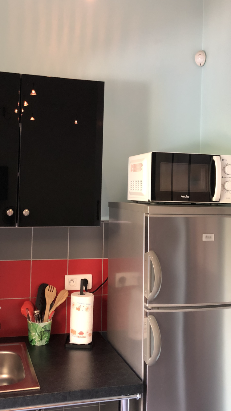 Estudio totalmente equipado para personas con movilidad reducida: cómoda cama doble eléctrica, ducha a ras de suelo, lavabo adaptado, cocina americana adaptada, patio y terraza, aparcamiento junto al estudio. Ropa de cama y toallas incluidas. Alojamiento para no fumadores. No se aceptan animales, el propietario ya tiene un perro.